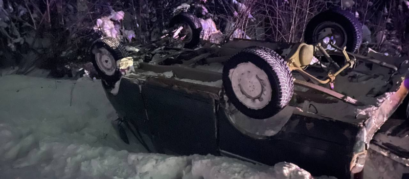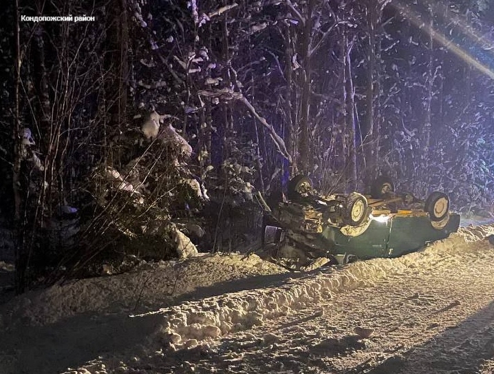 Как сообщили в Госавтоинспекции Карелии, вблизи Кондопоги 12 января в 19:40 водитель микроавтобуса «Соболь» съехал в кювет. Автомобиль занесло, он перевернулся на крышу.