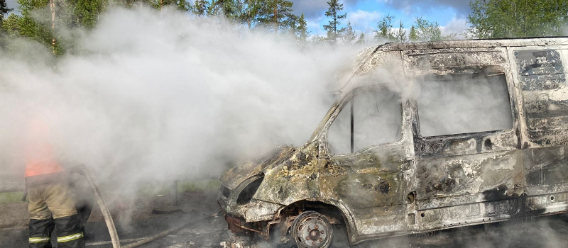 Микроавтобус сгорел на трассе Кола в Карелии