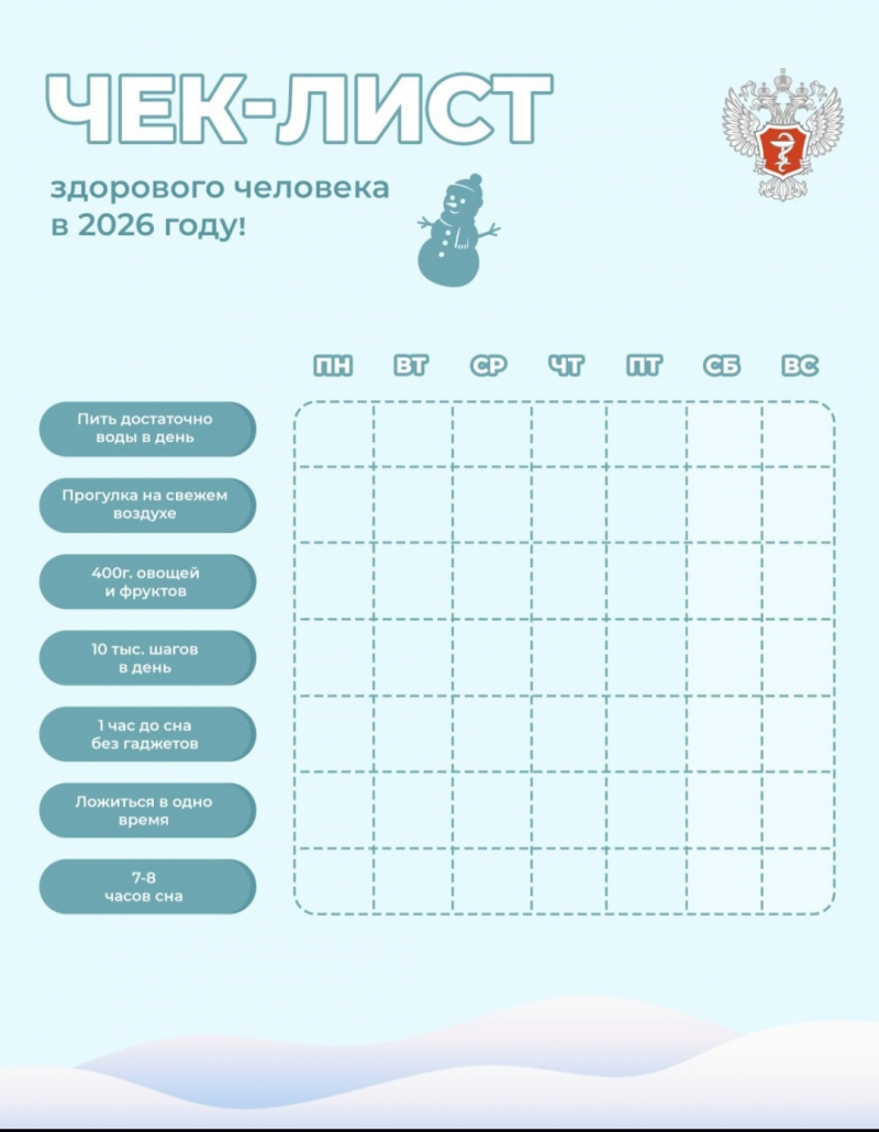 Минздрав собрали в одном чек-листе самые полезные и важные привычки, которые помогут качественно начать и провести год.