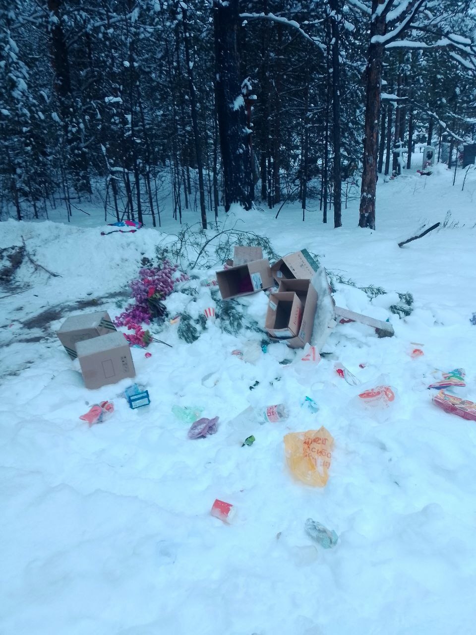 «На сегодняшний день вновь начала образовываться свалка. Сейчас недобросовестные граждане произвели утилизацию картонных коробок с бытовым мусором, — негодуют местные власти. — Просьба ко всем гражданам соблюдать порядок и размещать отходы исключительно с территории кладбища в предназначенные для этого контейнеры».