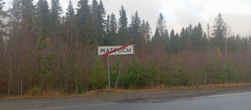Водитель наехал на дорожный знак с названием поселка Матросы и скрылся с места происшествия.