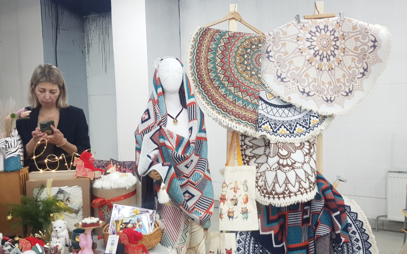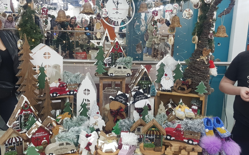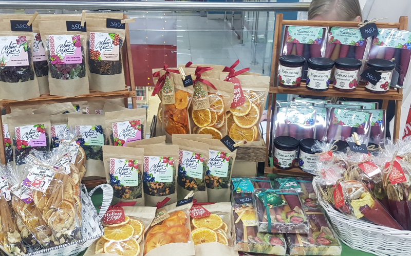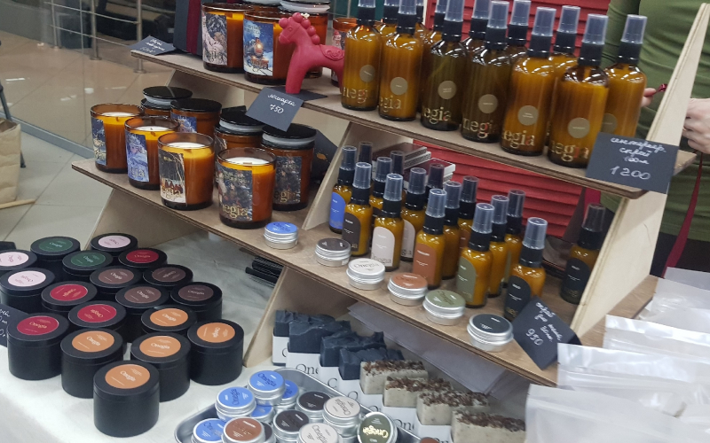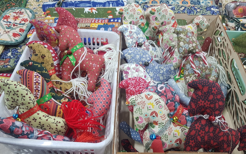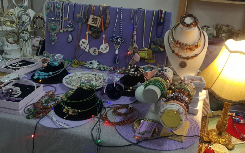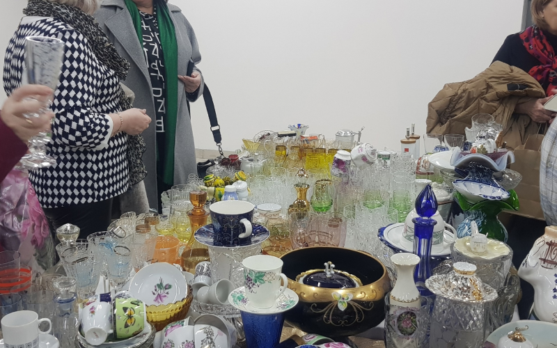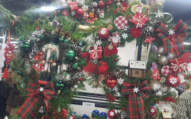 В продаже посуда и бижутерия, лакомства, украшения, декор для дома, одежда, елочные игрушки, хрусталь и подсвечники, пластинки, вышитые полотенца, корзины, аромасвечи.