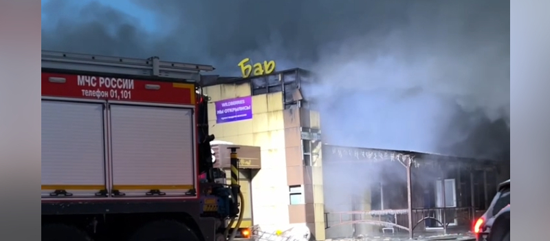 Огонь охватил здание с баром, химчисткой и пунктами марктеплейсов в Костомукше