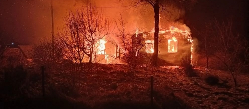 Огромный частный дом в селе Карелии горит уже 5 часов