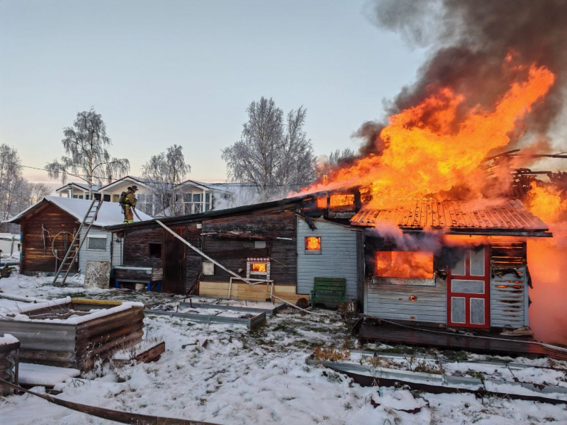 Охваченный пламенем дом в Кеми тушили 15 спасателей