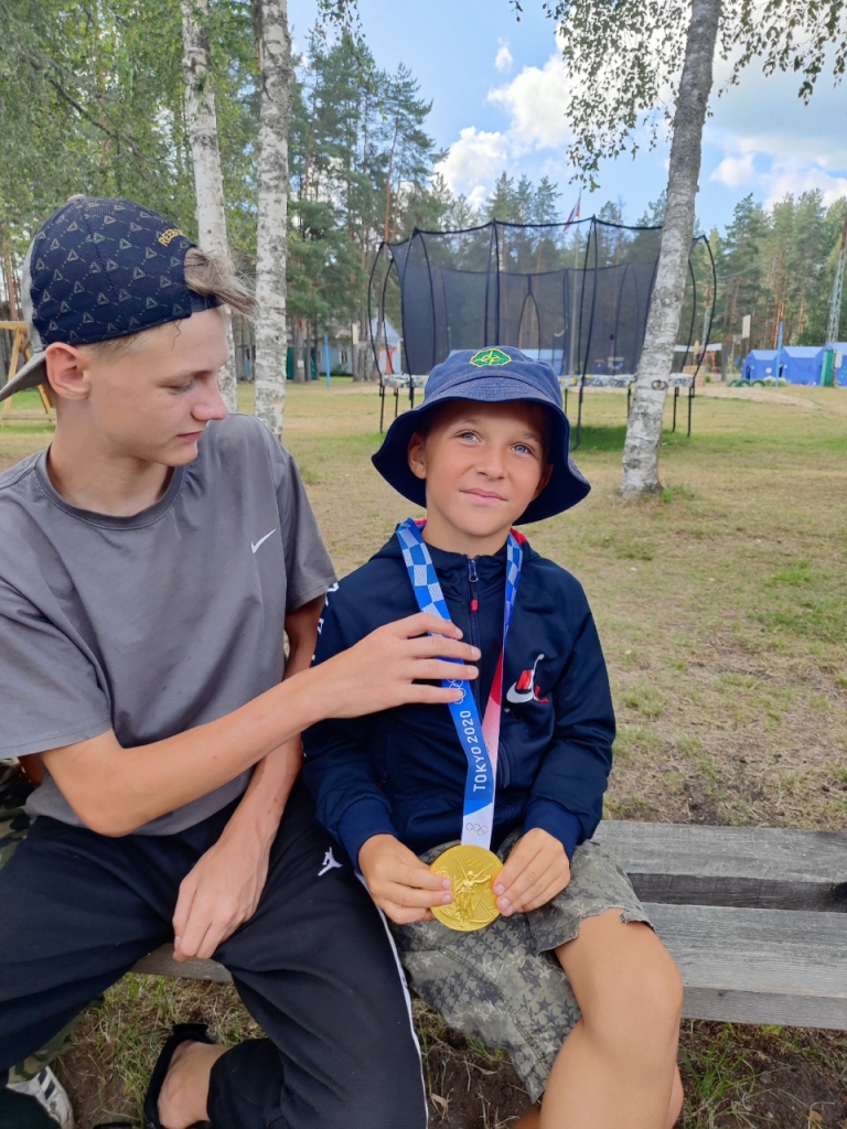 Олимпийский чемпион дал ребятам из центра помощи в Карелии поносить золотую медаль