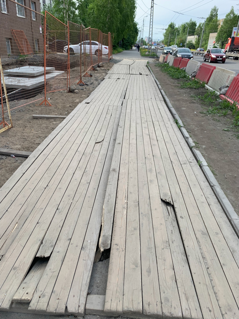 Опасный деревянный настил поджидает пешеходов в центре Петрозаводска