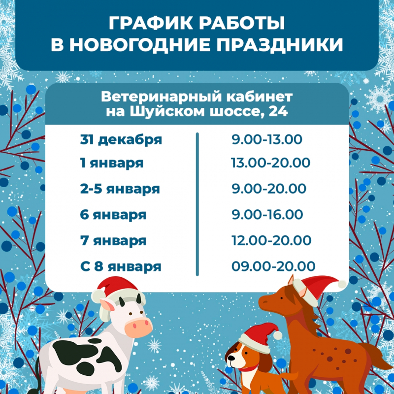 Опубликован режим работы веткабинетов Петрозаводска в новогодние праздники