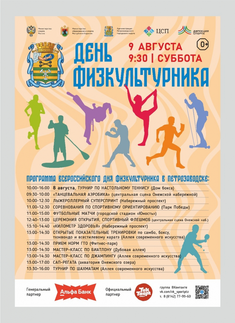 Как сообщили в администрации Петрозаводска, 9 августа столица Карелии вместе со всей Россией отметит День физкультурника.