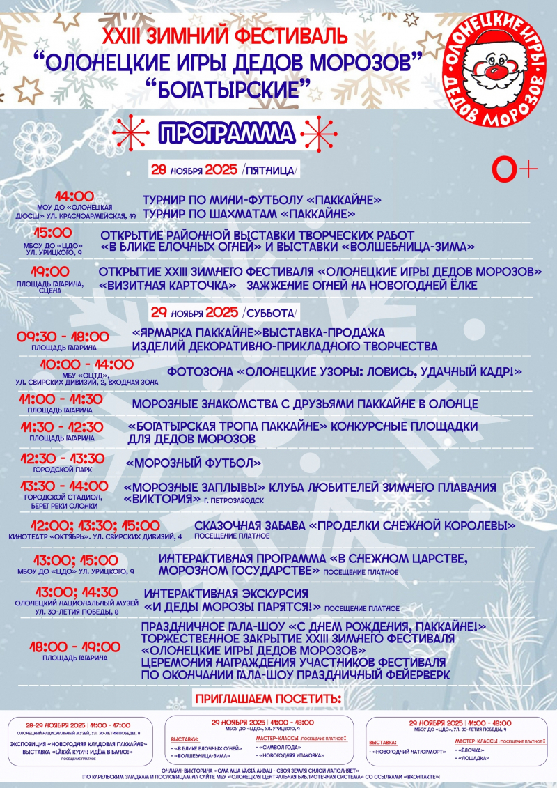 Зимний фестиваль «Олонецкие игры Дедов Морозов» пройдет 28-29 ноября.