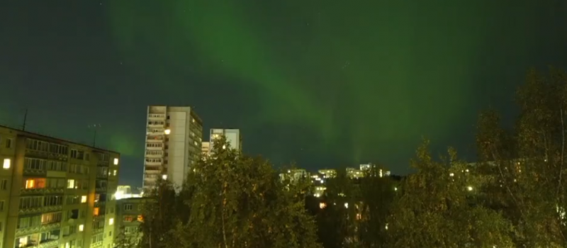 Опубликовано видео северного сияния в небе над Петрозаводском