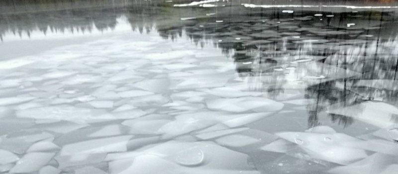 Водоем в Пряжинском районе покрылся льдом, который местные жители окрестили «мраморным», пишет издание «Наша жизнь — Meijän elaigu».
