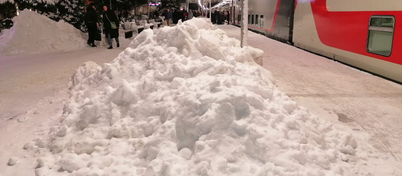 "Территорию вкзала почистили, снега много, его собрали в горки, которые лежат вдоль всей платформы. Видимо, вывозить некуда. Гости приезжают - и попадают сразу в снежный плен", - написал горожанин.