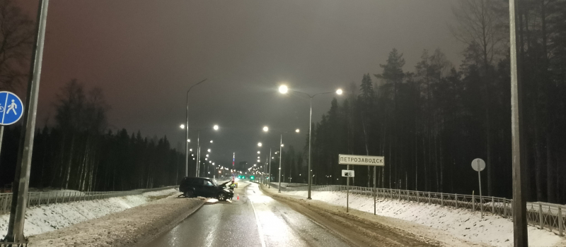 Пьяный водитель протаранил фонарь в Петрозаводске