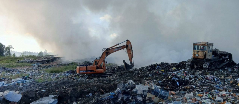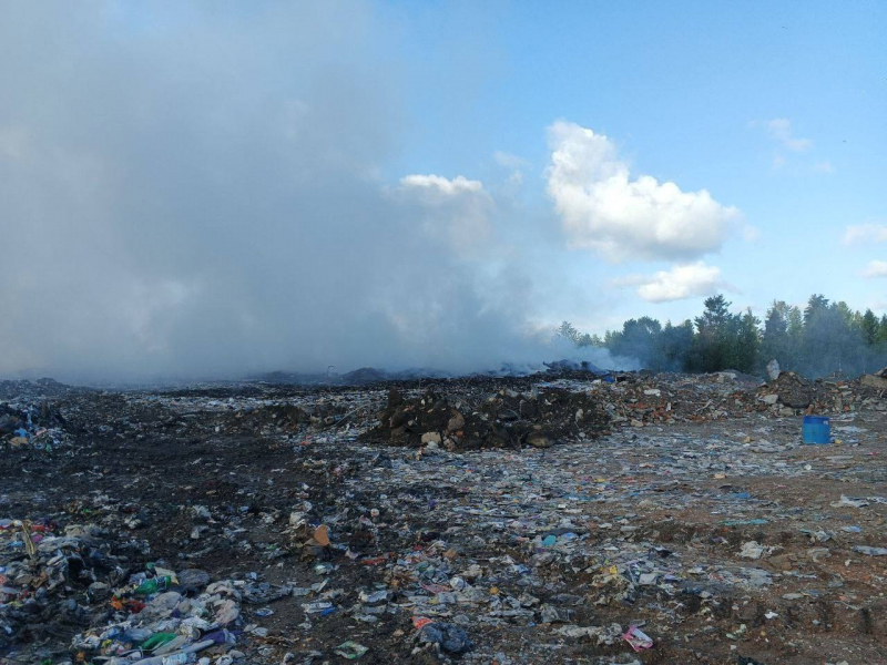Как сообщили в администрации Кондопожского района, площадь возгорания на мусорном полигоне под Кондопогой уже составляет 0,5 гектаров.