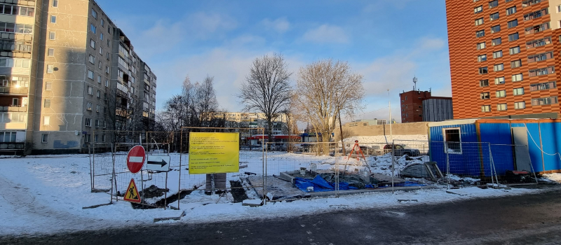 Надпись на информационном щите гласит, что работы должны были завершиться 25 ноября, но пока они еще в самом разгаре.