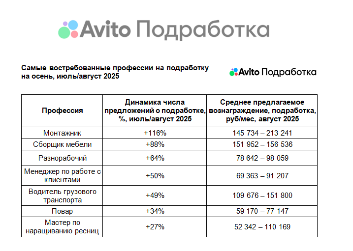 В Карелии и в СЗФО в августе этого года количество предложений о подработке для монтажников выросло более чем в два раза за месяц. Временным сотрудникам готовы платить примерно от 145 до 213 тыс. рублей в месяц подработки. Об этом информирует "Авито".