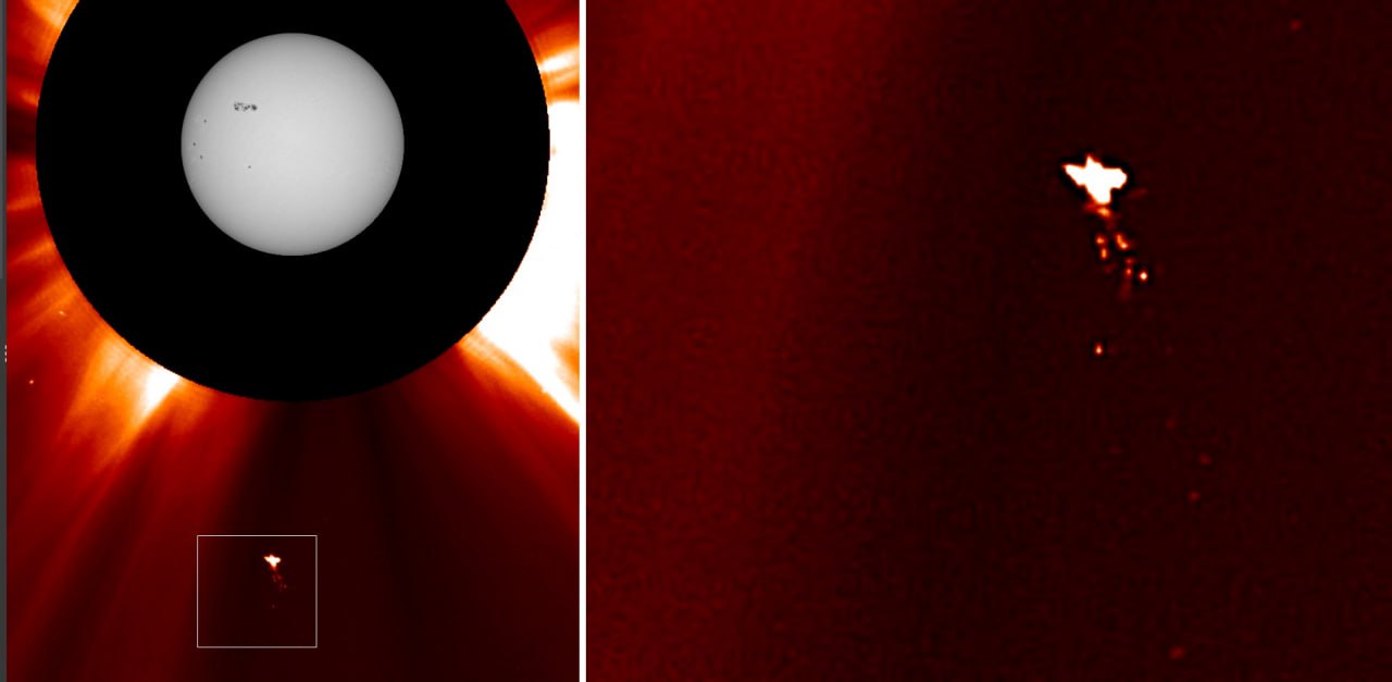 Как сообщили в Лаборатории солнечной астрономии ИКИ РАН, вечером 2 февраля телескопом LASCO С2 на Солнце был запечатлен похожий на птицу объект.