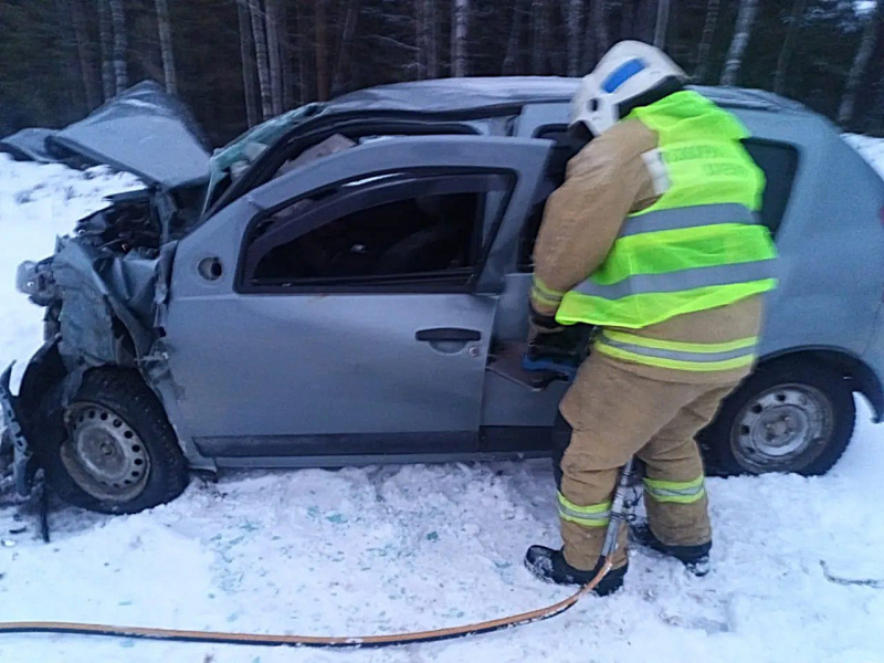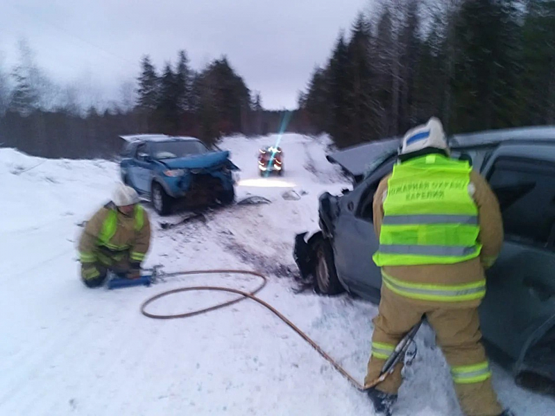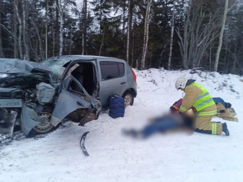Госкомитет Карелии по безопасности опубликовал фото смертельного ДТП в Беломорском округе. Там погибли 3 человека — один из них скончался в «скорой».