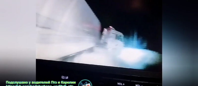 В паблике «Подслушано у водителей Птз и Карелии» опубликовали видео ДТП с двумя грузовиками, которое произошло 28 ноября на 752 километре трассы Кола в Сегежском районе.