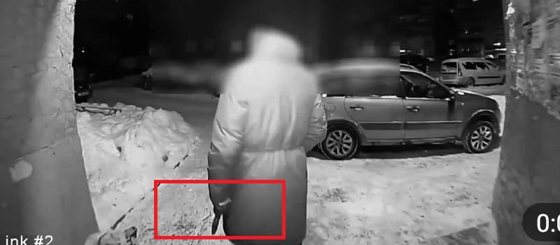 В ТГ-канале «Первый ПТЗ» опубликована видеозапись, на которой запечатлено, как 22 января в 23.42 неизвестный мужчина, в балаклаве, закрывающей лицо, подходит к подъезду, пряча за спиной нож.