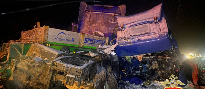 Полиция Карелии показала фото с места столкновения большегрузов
