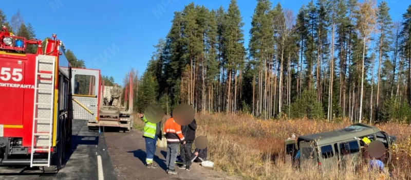 После столкновения грузовика и микроавтобуса в Карелии госпитализированы 8 человек