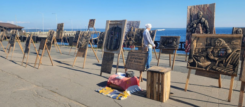 Сегодня, 11 сентября, на набережной Онежского озера в Петрозаводске открылась выставка деревянных картин. Она посвящена памяти героев Великой Отечественной войны. Работы можно увидеть только сегодня до 20 часов.