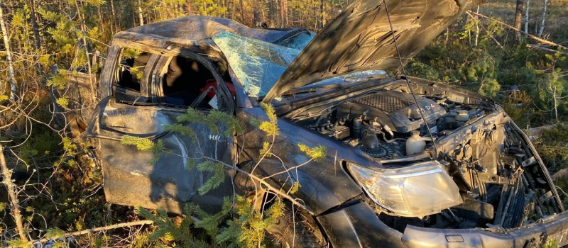 Как сообщили в Госавтоинспекции Карелии, 30 ноября в 12:20 на 726 км автодороги Р-21 «Кола» в Сегежском округе водитель Toyota Hilux съехал в кювет — автомобиль перевернулся несколько раз и снес деревья.