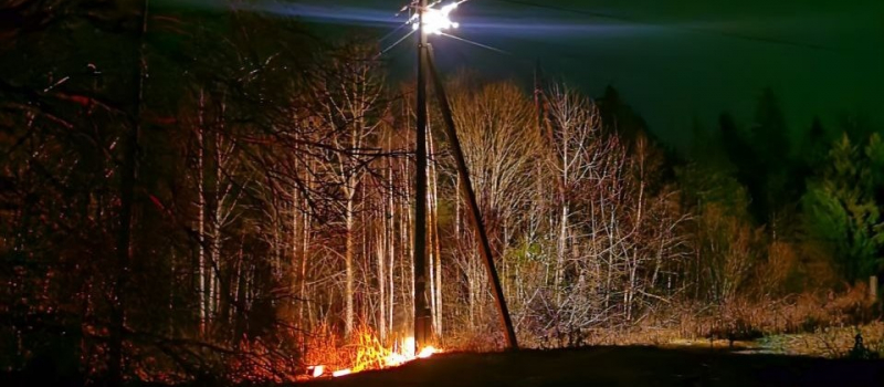 Пожар на ЛЭП оставил два поселка в Карелии без света