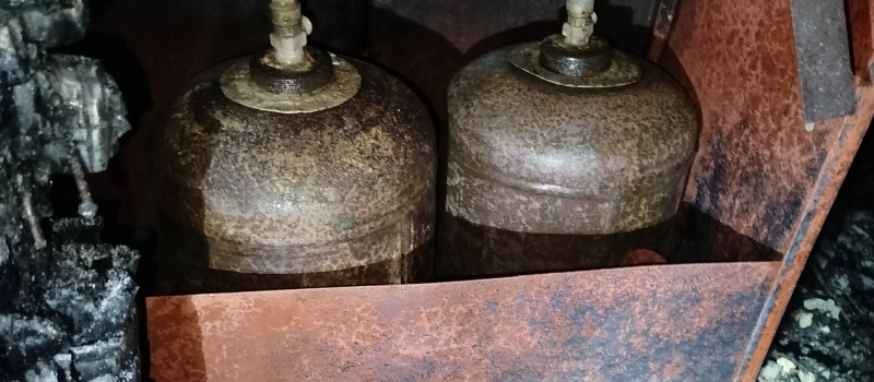 Рядом с ней находилась газовые баллоны. Взрыва удалось избежать.