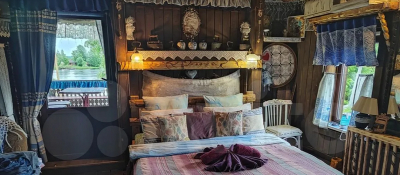 «Дом в старом карельском стиле находится в живописном месте, прямо на берегу реки. Интерьер дома и прилегающей территории благоустроен и украшен предметами крестьянского быта», — заявили владельцы объекта.