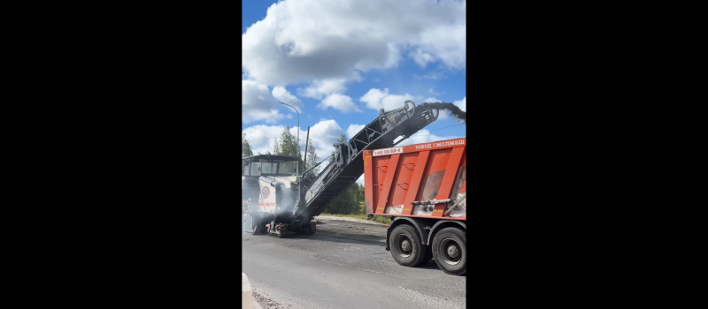 Рабочие Кондопожского ДРСУ приступили к фрезерованию асфальта. Планируется полностью снять покрытие до основания, восстановить «подушку» и уложить два слоя асфальтобетона.
