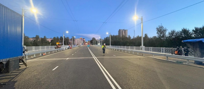 Рабочие вносят последние штрихи в новый Лобановский мост в Петрозаводске