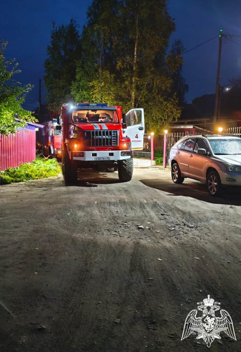 Как сообщили в Росгвардии Карелии, сотрудник ведомства в Петрозаводске спас частный дом и семью, живущую в нем, от ночного пожара.