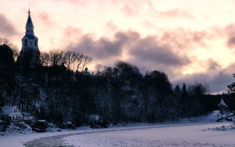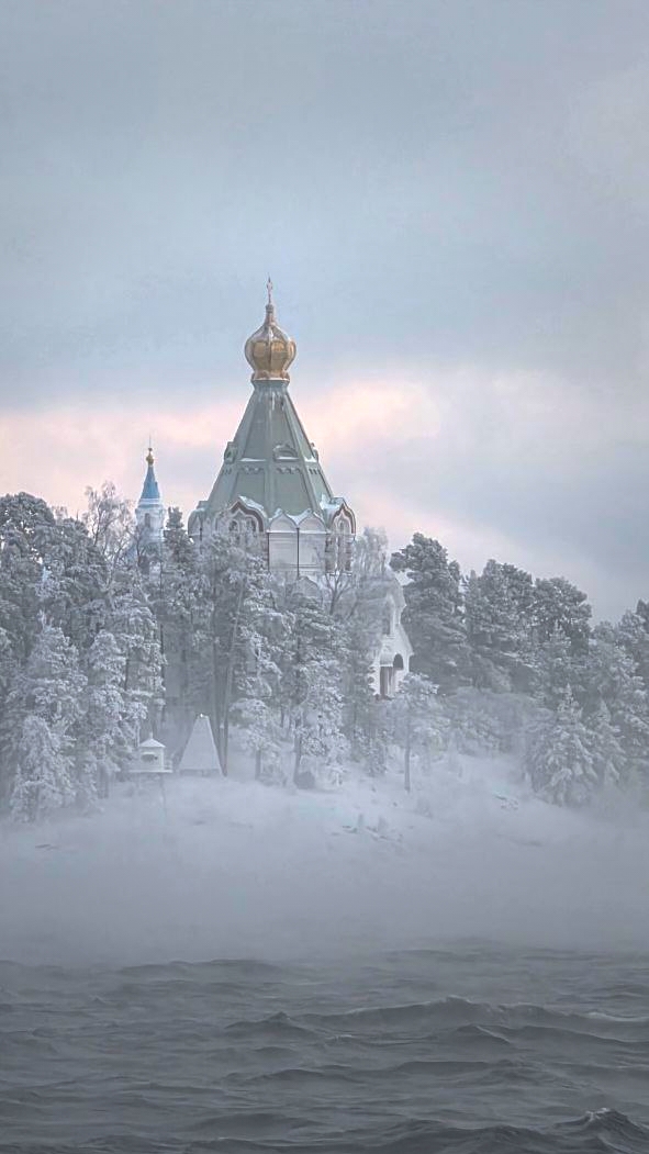 В паблике Валаамского монастыря монахи опубликовали фото острова в рождественском снегу.