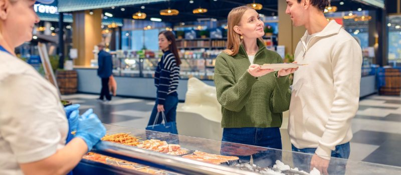 Кроме того, в эти дни на всю продукцию из этой рыбы — живую, свежемороженую, маринованную — будет действовать праздничная скидка 10 процентов, в том числе и на онлайн-заказ. А повара в зонах «Готовим на месте» бесплатно разделают и приготовят ее.