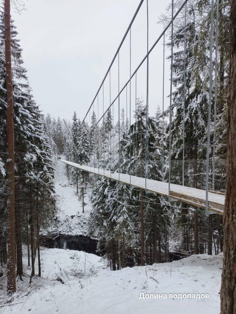 Самый длинный подвесной пешеходный мост строят в Карелии