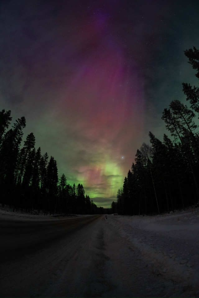 Полярное сияние принесла в Карелию сильная магнитная буря.