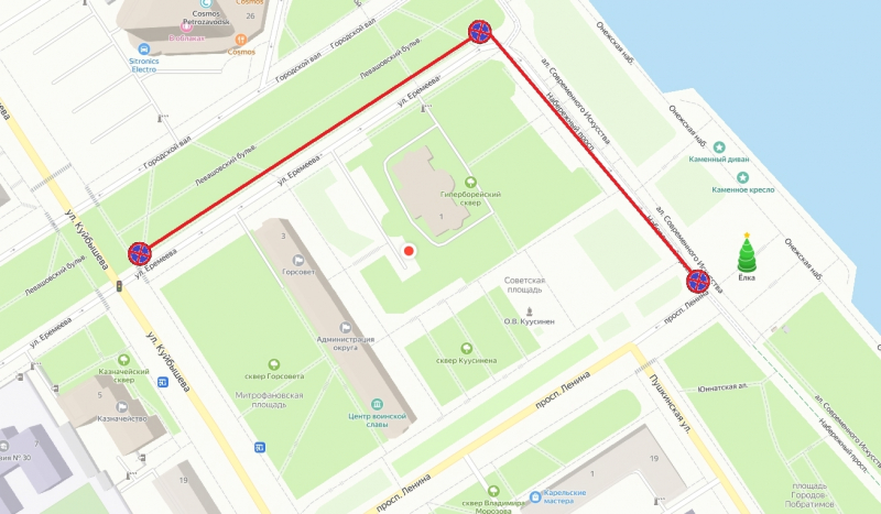 С 8:00 7 февраля до 20:00 8 февраля проезд автомобилей запретят на улице Еремеева (от улицы Куйбышева до Набережного проспекта), на Набережном проспекте (от улицы Еремеева до проспекта Ленина), на проспекте Ленина (от Набережного проспекта до улицы Куйбышева), а также на Пушкинской улице (от проспекта Ленина до улицы Германа Титова) до 19:00 7 февраля.