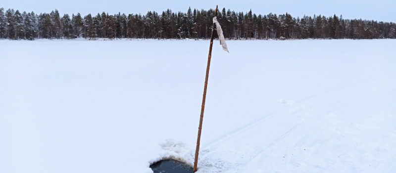 Шест с флажком установили в опасном месте на озере в Костомукше