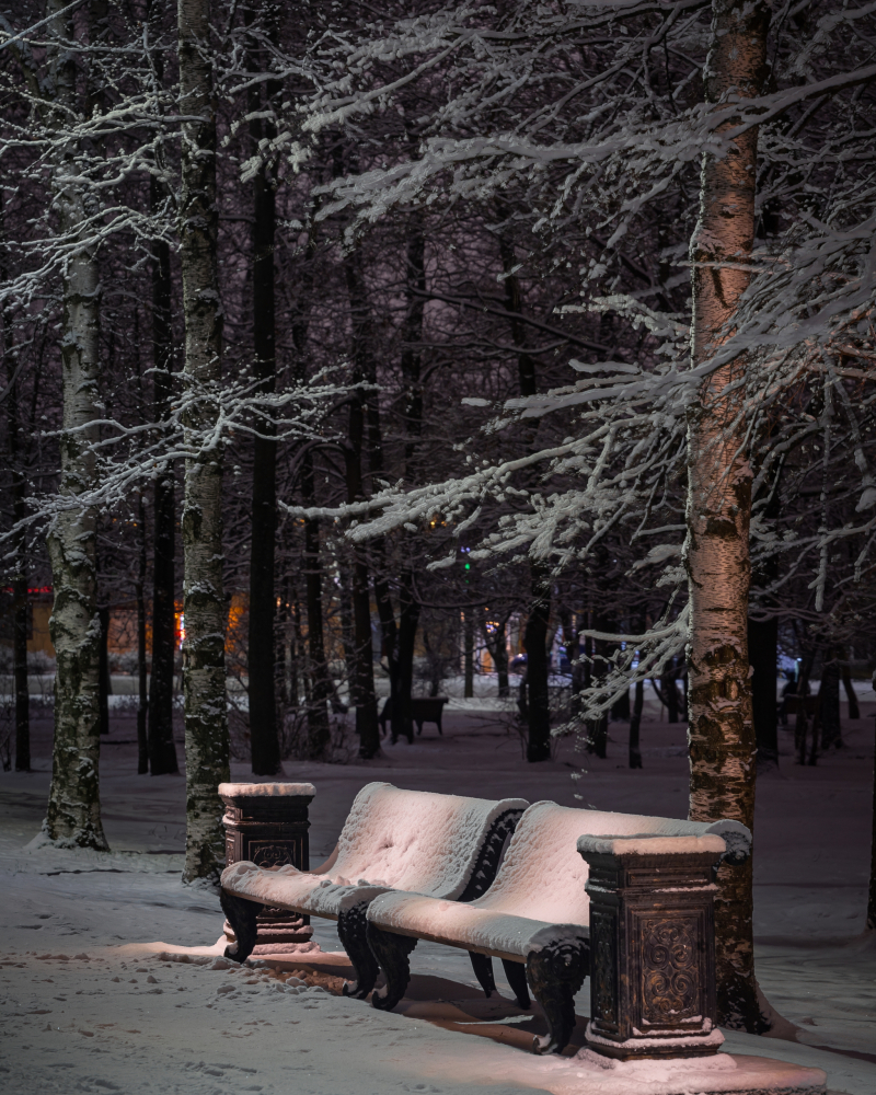 «Зима вчерашней ночью была прекрасна. Чисто, тихо. Заснеженные лавочки, деревья в наряде», — написал в комментариях к фото Сергей Михайленко.