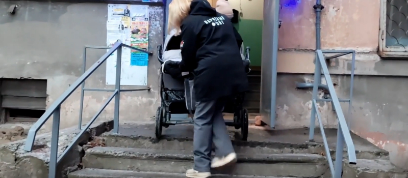 В паблике «Народный фронт Карелии» сообщил, что в доме 1962 года постройки на набережной Гюллинга проживает многодетная мать, которая воспитывает троих детей одна. И у нее возникла проблема: когда старший сын в школе, она не может спустить коляску с двойняшками с крыльца, так как нет пандуса.