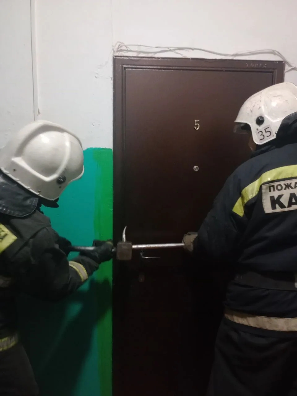 Четыре спасателя выехали на вызов и открыли двери. Женщину передали бригаде врачей.