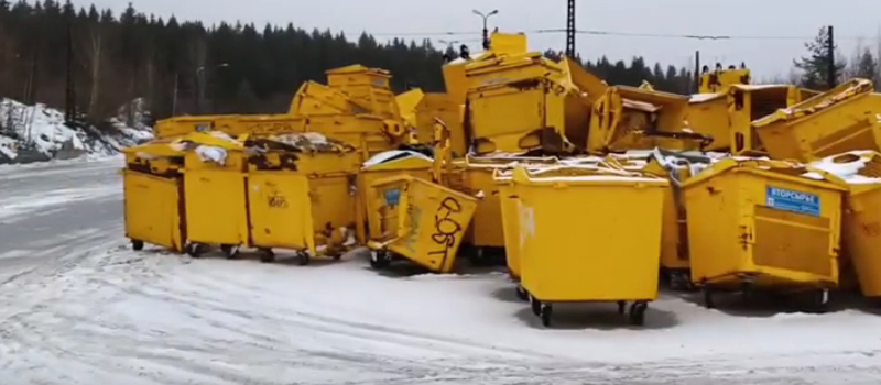 Свалка желтых контейнеров для раздельного сбора мусора обнаружена в Петрозаводске
