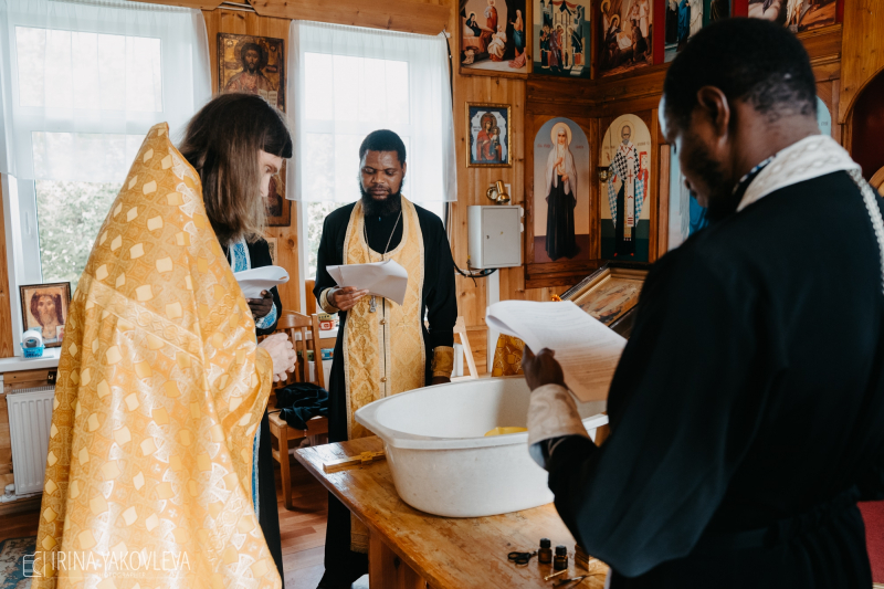 «Молитвы шли на двух языках, но основные на русском, а более общие - на английском. Батюшка объяснял отцам из Африки на английском, что происходит по этапам, но большую часть обряда проводил сам. Они смотрели и сами прочитали несколько молитв», - рассказала фотокорреспондент.