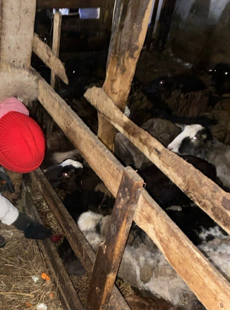 Ранее мы писали, что животных, которых нашли на ферме в грязных и холодных помещениях, собрали в один хлев, который утеплили.