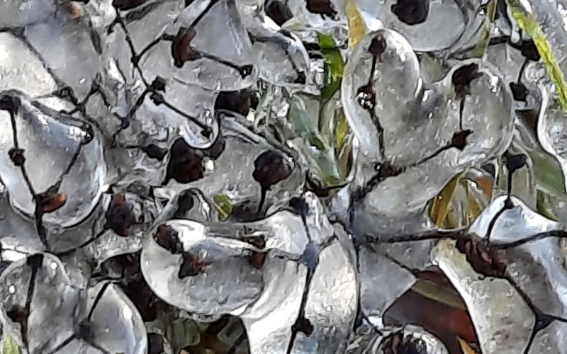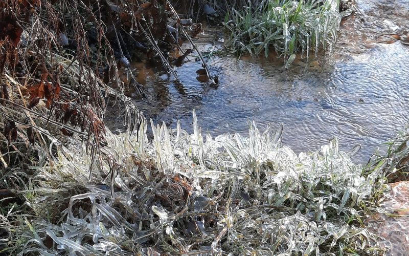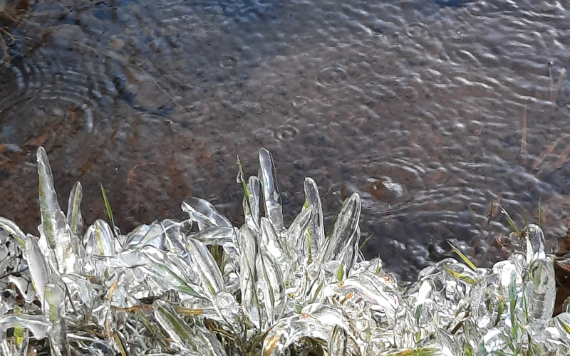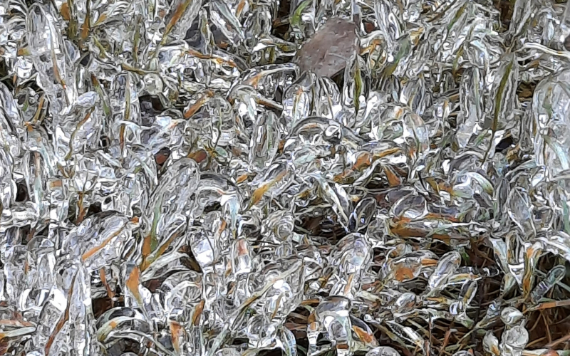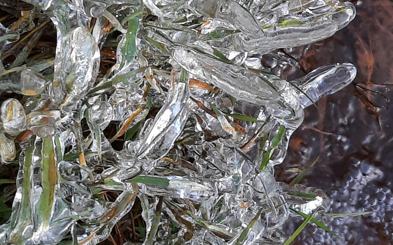 В паблике лыжной трассы «Фонтаны» опубликованы фото Александра Зинкова, который запечатлел, как 10 ноября красиво обледенела трава.