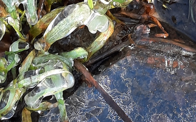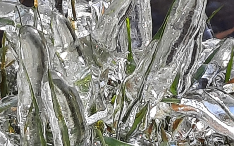 Трава красиво обледенела на лыжной трассе в Петрозаводске