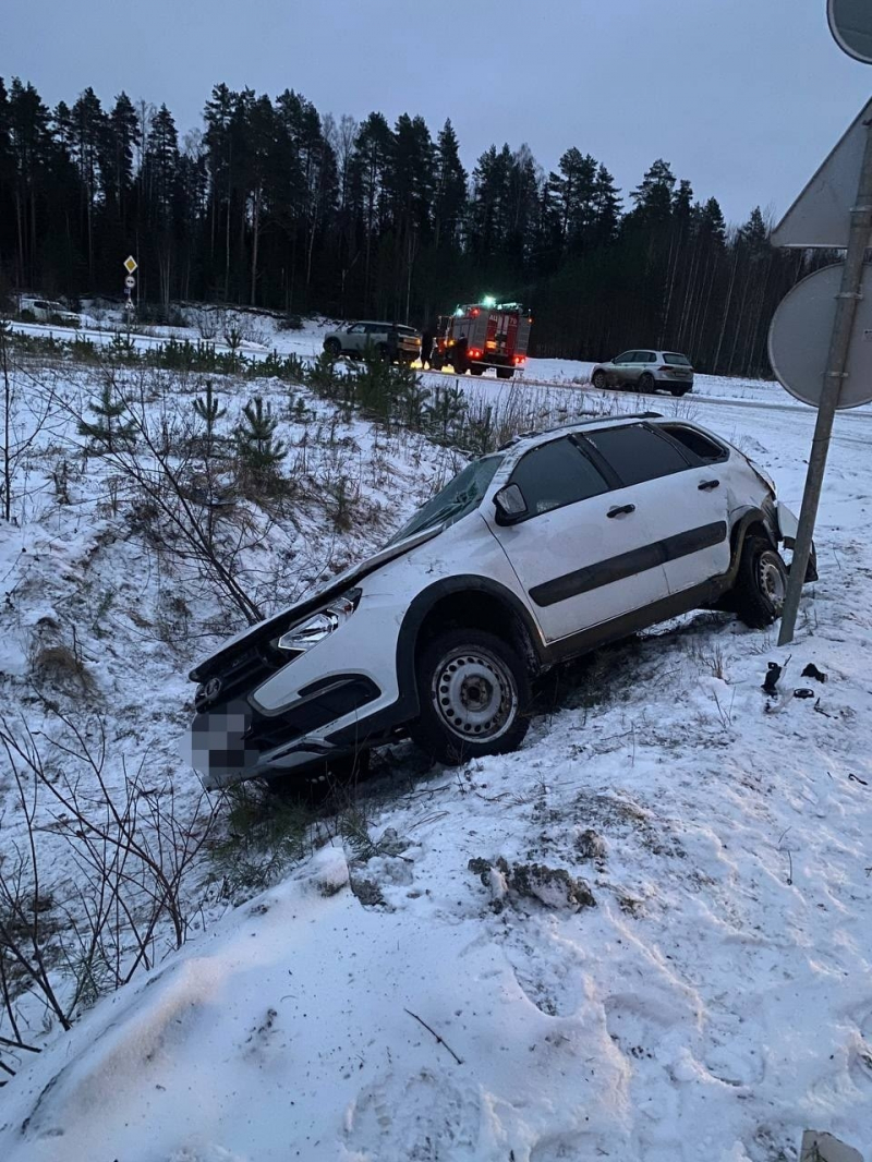 Автомобиль упал в кювет около поселка Эссойла.